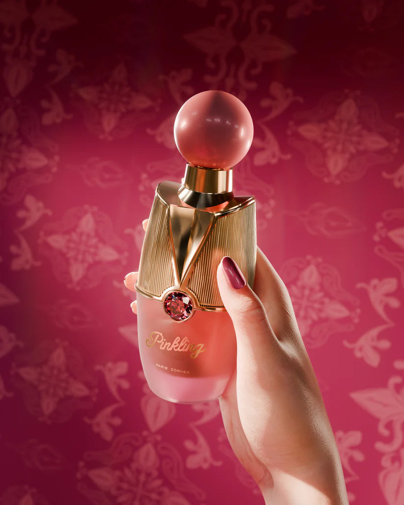 Pinkling es una seducción juguetona envuelta en un velo pastel y una calidez dorada. Se abre con un estallido jugoso de cereza, acariciado por el azafrán y un cremoso toque de leche: dulce, coqueta y cautivadora desde el primer instante. El corazón se intensifica con un remolino de benjuí y suaves matices ahumados, realzados por delicadas flores blancas que brillan sobre la piel como un rubor sutil. Al asentarse, el ámbar y la nagarmotha se despliegan con una riqueza aterciopelada, equilibrados por un almizcle limpio y sensual. El resultado es una fragancia que se siente como travesura envuelta en seda: lo suficientemente dulce para seducir, lo bastante misteriosa para hipnotizar e imposible de olvidar.
